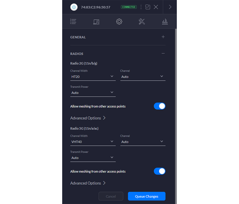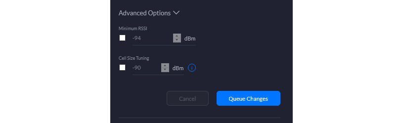 Bu seçenek, cihazların Radyo yapılandırması sekmesini görüntülerken Gelişmiş Seçenekler altında bulunur.